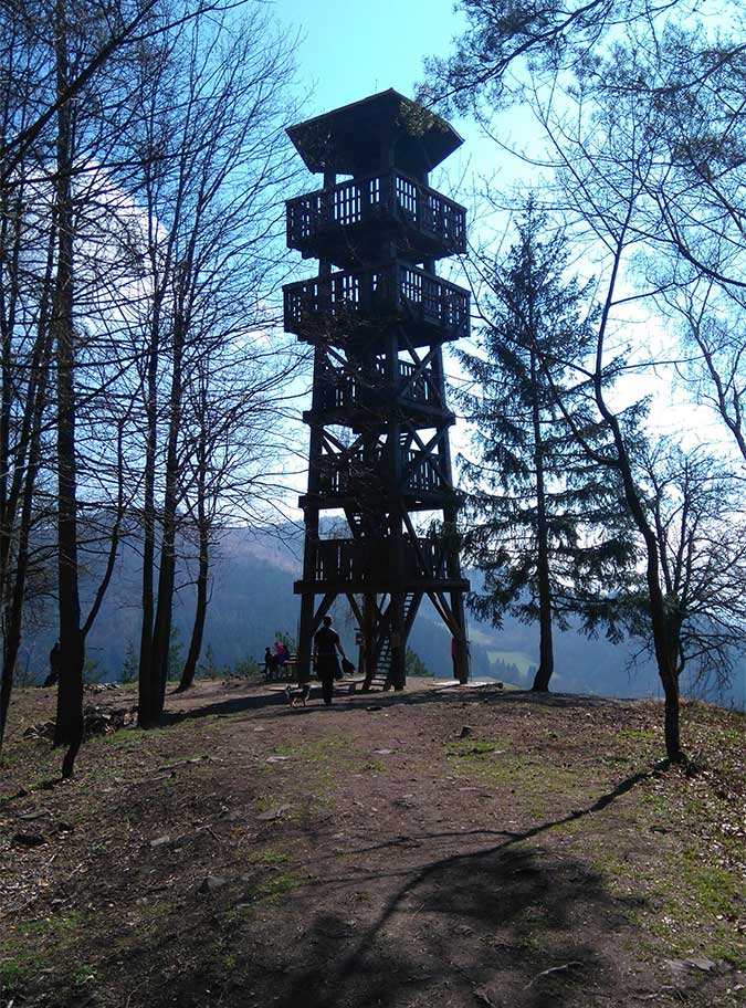 Na novootvorenú rozhľadňu (2018) sme sa vybrali z obce Divinka, odkiaľ vedie náučný chodník. Z informačných tabúľ sme sa dozvedeli veľa zaujímavého z histórie osídľovania vrchu. Rozhľadňa sa nachádza v nadmorskej výške 490 m. n. m. Je vysoká 19,2 metra a má 5. poschodí. Patrí tak medzi najvyššie rozhľadne v regióne. Je možné sa tu dostať ale aj z Lalinka, z Diviny alebo Marčeka. Je to ideálna a nenáročná prechádzka aj pre rodiny s deťmi.