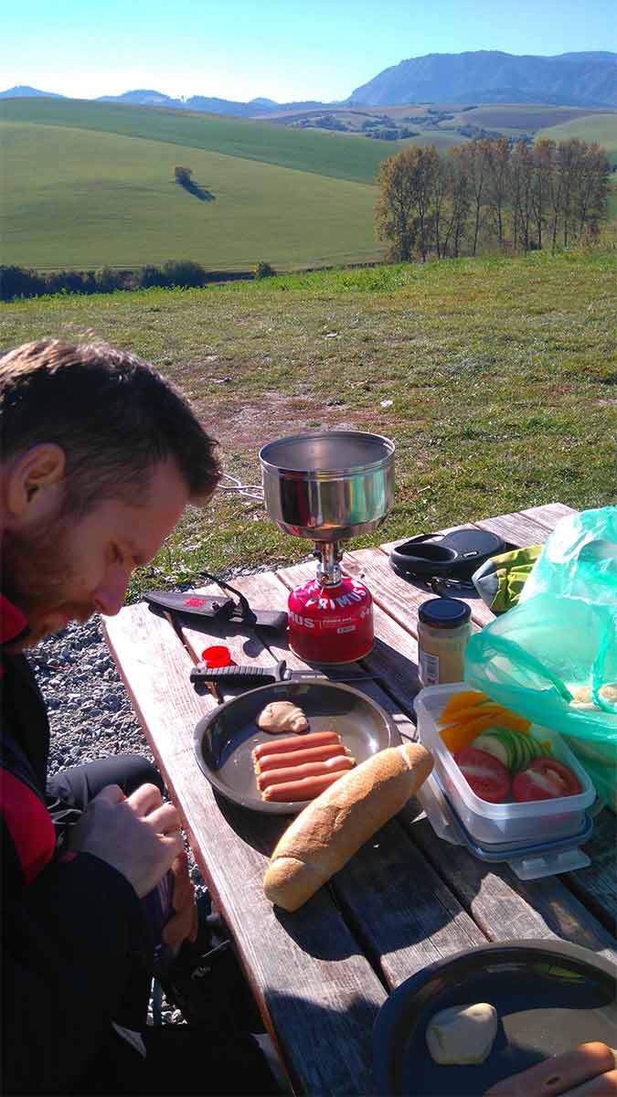 Turistická rozhľadňa na Tŕní. Ak ste už navštívili rozhľadňu na Kalníku, tu zažijete menšie Dejá vu. Na vlas rovnaká 8-metrová turistická rozhľadňa ako na Kalníku vyrástla totiž v roku 2012 aj na Tŕní – v peknom prostredí medzi obcami Turčianske Jaseno, Záborie a Horný Kalník. Poskytuje pekný výhľad na veľkú časť Turčianskej kotliny obklopenej vrchmi Malej a Veľkej Fatry. Z rozhľadne Na tŕní pri dobrej viditeľnosti vidieť aj rozhľadňu Na Kalníku. Pod rozhľadňou je vybudované príjemné posedenie, ktoré sme samozrejme hneď využili a výdatne sa tu naraňajkovali. 🙂