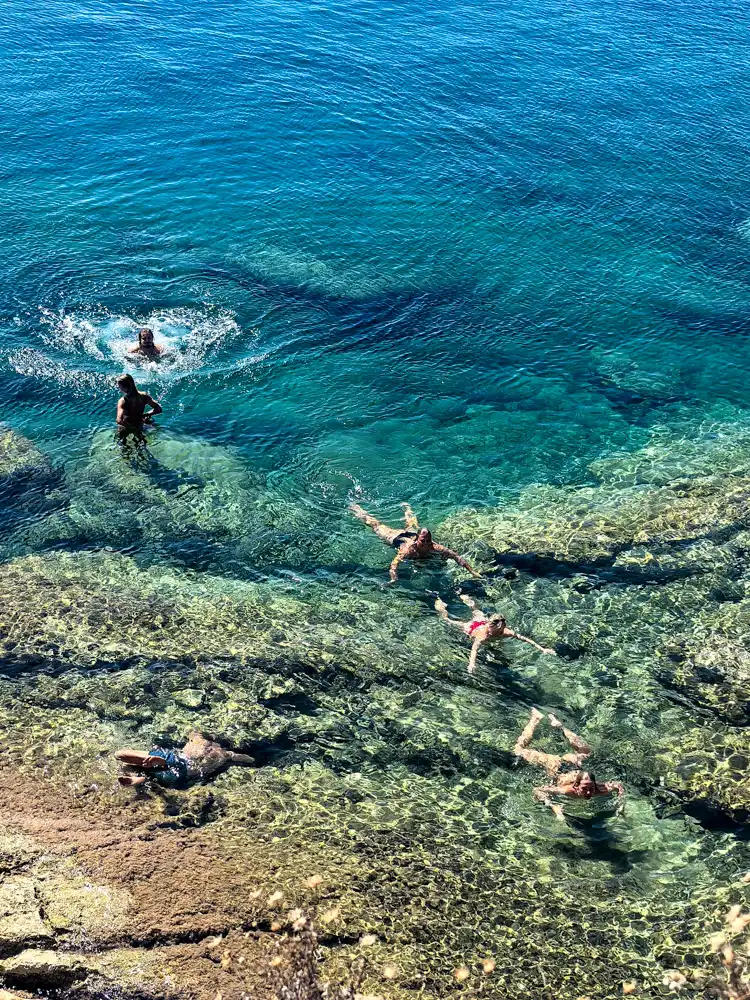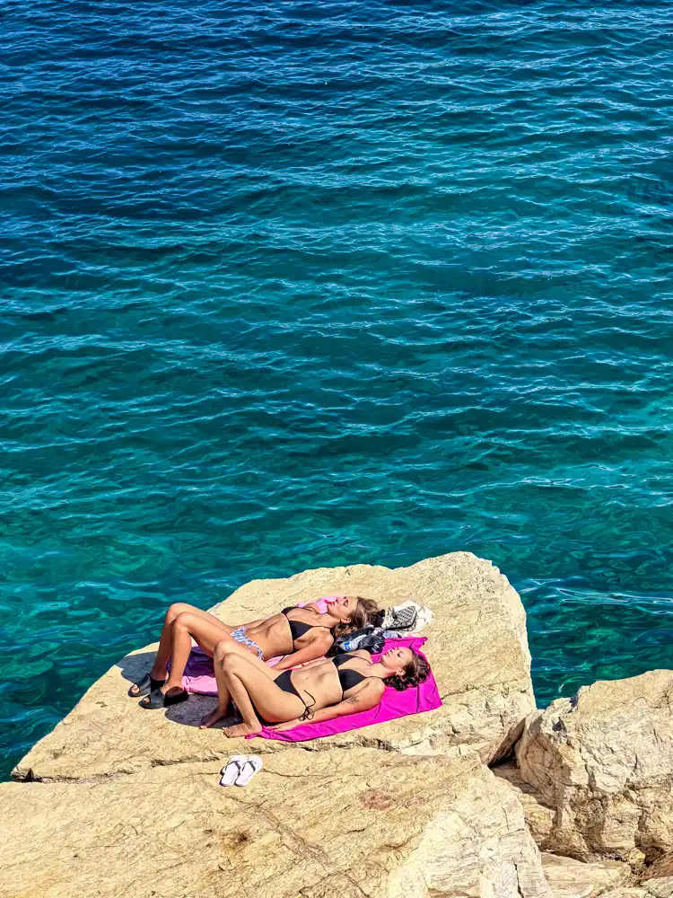 Mojím osobným objavom však bola ulička Kanapitsas, ktorá kopíruje pobrežné útesy. Na jednej strane ju lemuje cintorín s neskutočným výhľadom, na druhej sú skalné vyhliadky, ktoré sa stali mojím kúpacím rituálom.