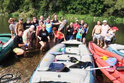 Ešte skupinová fotka, posledná logistika, buchot zátky a už sme na vode.