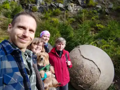 Geopark Megoňky- Šance na štátnej hranici Českej a Slovenskej republiky. Obrovské kamenné gule v kameňolome pri Čadci v CHKO Kysuse.