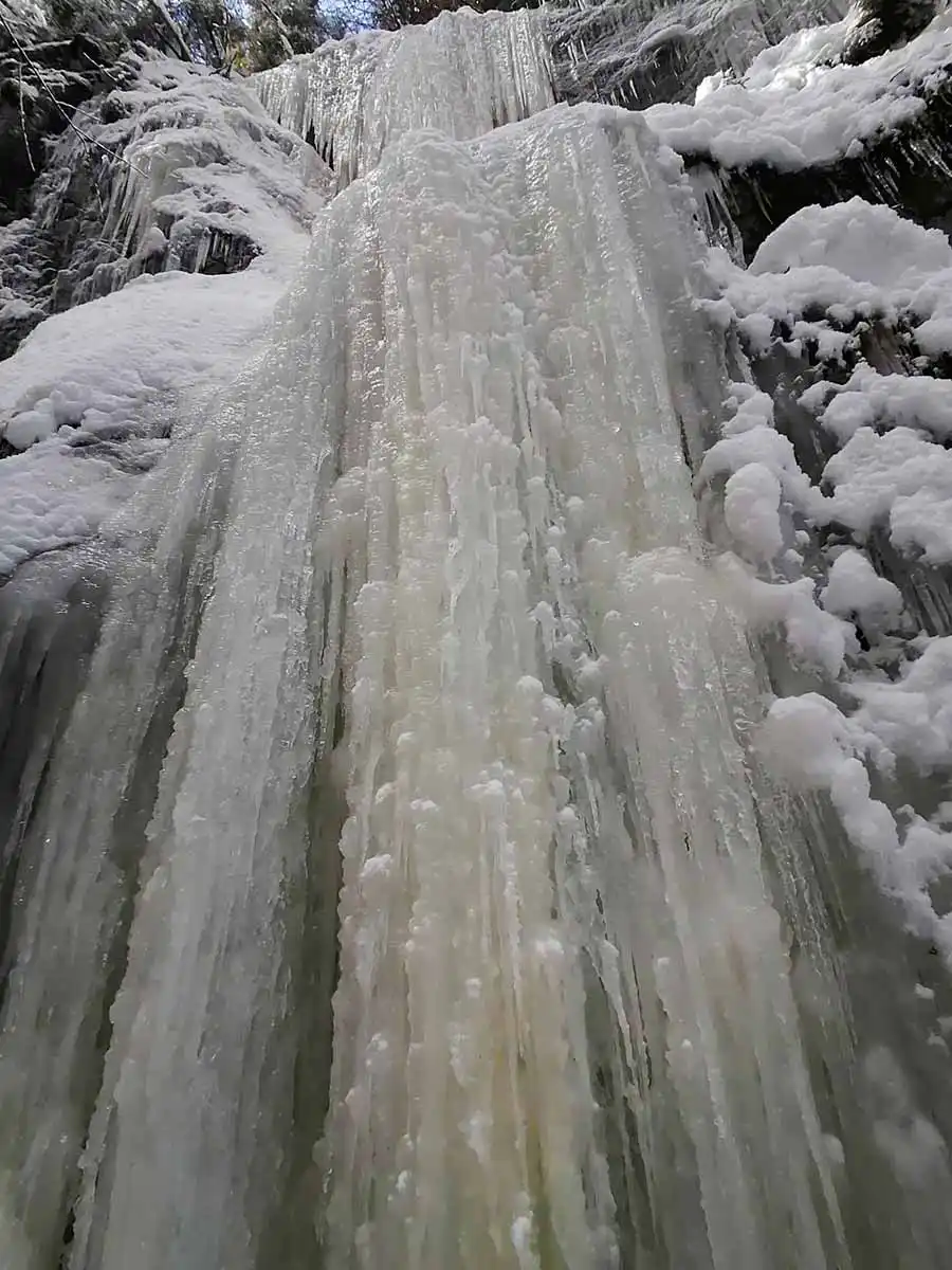 Postupným prechádzaním rokliny na bočných skalných stenách na mnohých miestach obdivujeme nádherné cencúle a mohutné ľadové závesy a ľadopady.