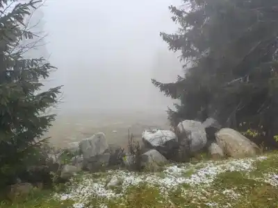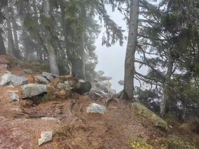 Pohľady na brehy nás natoľko zaujali, že sme pri hoteli Solisko temer minuli odbočku na Jamské pleso a Kriváň. Nie, že by sme tam mali namierené. V takomto počasí je celkom jedno, kadiaľ sa táraš.