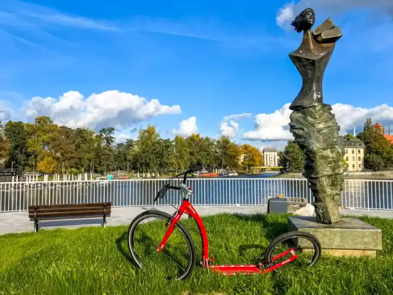 Praktický „Scooter-hack: Vroclav má jedno špecifikum – „maćkovú dlažbu“ (veľké mačacie hlavy) v úplnom centre. Kým Rynek je pre kolobežku s malými kolesami „vibračná skúška“, hneď vedľa neho vedie Promenada Staromiejska. Je to zelený pás s hladkým asfaltom/mlatom, ktorý kopíruje bývalé hradby a vodnú priekopu. Pre kolobežku je to „diaľnica“ cez centrum bez trasenia hlavy.