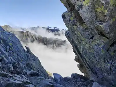Po polhodine sme sa dostali na hrebeň, kde už slnko krásne svietilo. Bolo to nádherné! Na striedačku sme sledovali more bielych mrakov v doline a majestátne tatranské končiare nad nami.