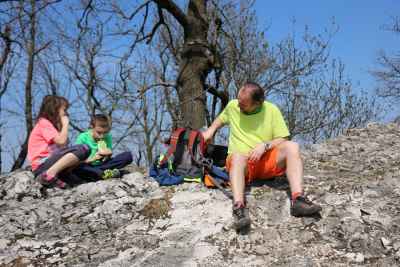 Aj tentokrát bola obsypaná skalolezcami ako vianočný stromček salónkami. Nostalgicky som si zaspomínala na časy, keď som práve na tejto skale naberala svoje prvé skúsenosti s lozením. Pokračovali sme v ceste. Po „modrej“ sme sa dostali až na hrebeň. Nasledoval ešte jeden kratučký výstup k miestu označenému na rozcestníku ako „Rázcestie pod Zárubami“ a odtiaľ to už bol naozaj iba krôčik na samotné Záruby.