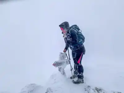 Chodník od Šútovského vodopádu stúpa prudko hore lesom. Pri poslednom strome si dávame pauzu, pretože ďalej sa už neschováme pred prípadným vetrom a snežením. Ešte chvíľu sme stále v závetrí. Hovoríme si, že ani snežnice netreba, je to stále fajn. Za chvíľu sa však všetko zmenilo. Snežilo, fúkalo a čím sme sa viac približovali k hrebeňu chodník sa postupne strácal.
