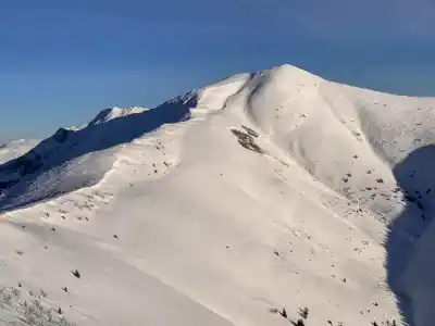 Obúvame snežnice, brodíme sa v snehu, hmle a hovoríme si, že hore bude určite krásne. Do sedla Priehyb prichádzame ešte v hmle, ktorá sa však za chvíľu rozplynie. Sme tu akurát včas.