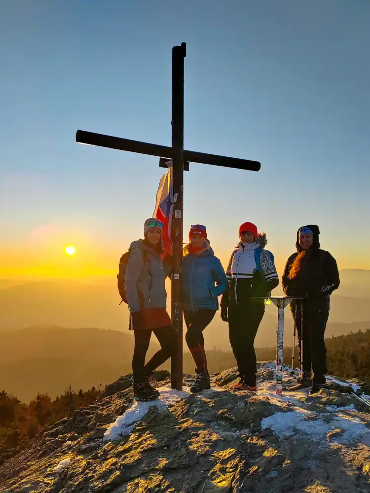 Výstup sme si načasovali tak, aby sme na samotnom vrchole pri kríži stáli tesne pred západom slnka. A stálo to za každú minútu čakania. Keď sa vyškriabete na tú 40 metrov širokú skalnú plošinu, otvorí sa pred vami panoráma, ktorá berie dych.